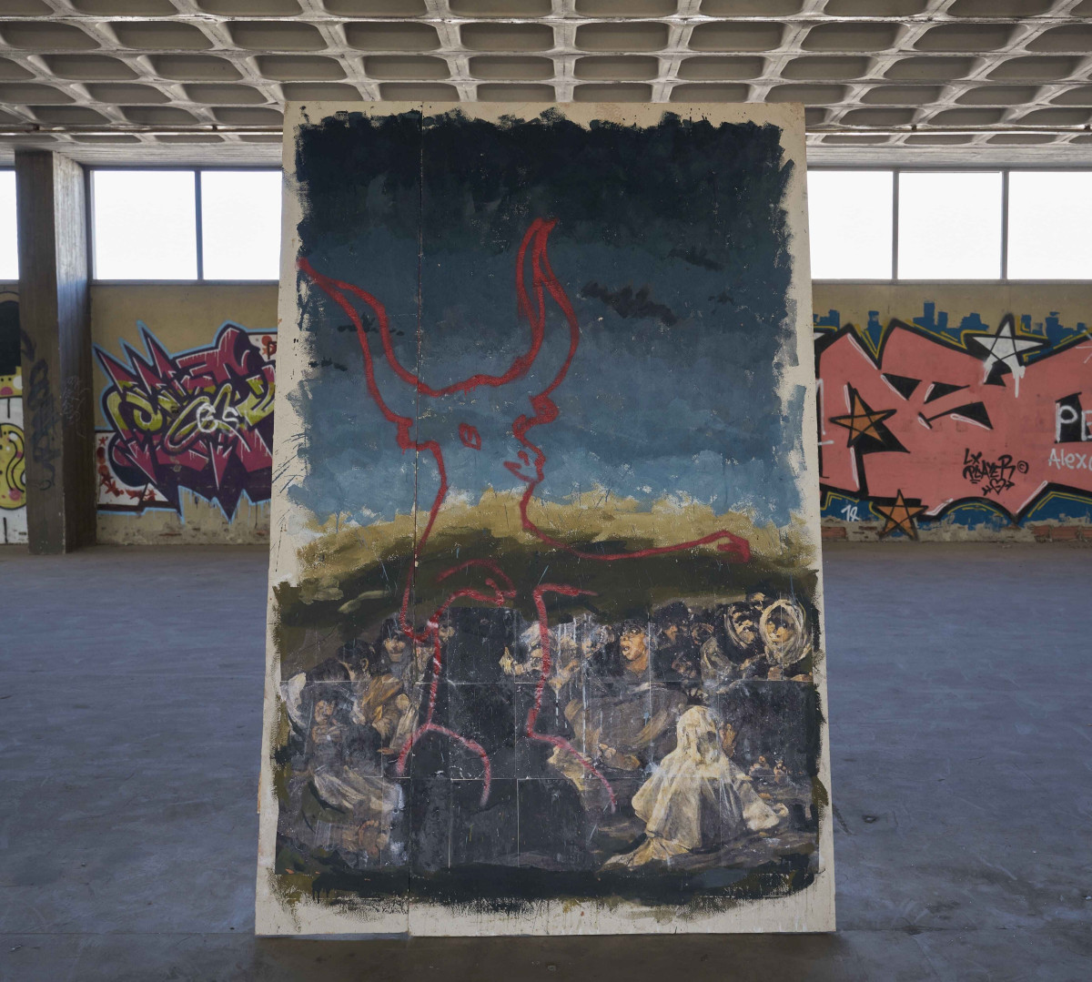 Perdiguero Trillo is interested in the rapprochement and friction between the rituals and dogmas established by the art and graffiti community, where images are produced and judged. This combination is central to his pictorial explorations of the present. As a Spanish artist Perdiguero Trillo draws from the great Spanish masters and their topics: heroic painting, religious painting, altarpieces, etc. Combined together with vandalic gestures, above what Perdiguero Trillo insists on portraying us as a gesture of vindication and encouter, his paintings are allegories that refer to the typical attitudes of graffitti and of his life.