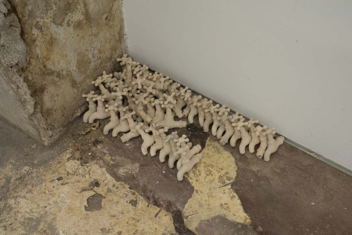 I work in sculptural media making objects and installations in which their material quality evidences artifice as part of the composition. For me, the physical process of manufacturing in its immersive intensity is important; moment in which I forget myself in the object happening. In the work I want to find synthetic units that, through clear but arbitrary guidelines, give an intuitive order to concerns about the possibilities and conditions of individual and collective existence. I proceed through abstraction: I cut out elements from the domestic or industrial sphere and combine or transform them to present them as somewhat metaphysical emotional landscapes. Lately I turned to wood carving to play with giving abstract geometric body (silhouette and weight) to these mental atmospheres.